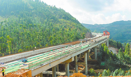 11月24日,江通高速公路大新村大桥实现双幅贯通。该公路作为我市重点路网工程,自2016年9月实施主体工程以来,目前已完成多项控制性工程,公路有望明年6月底竣工通车。(玉溪日报特约记者 师云波 特约通讯员 赵徽 通讯员 高凤彪)